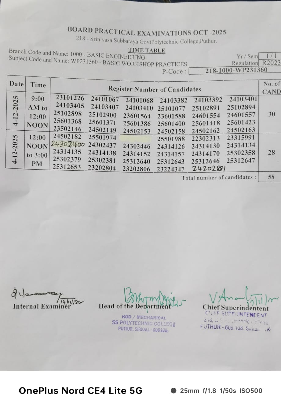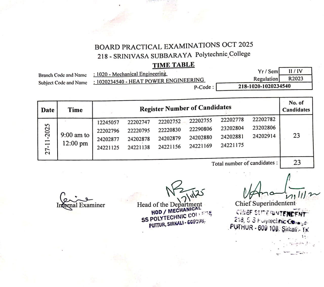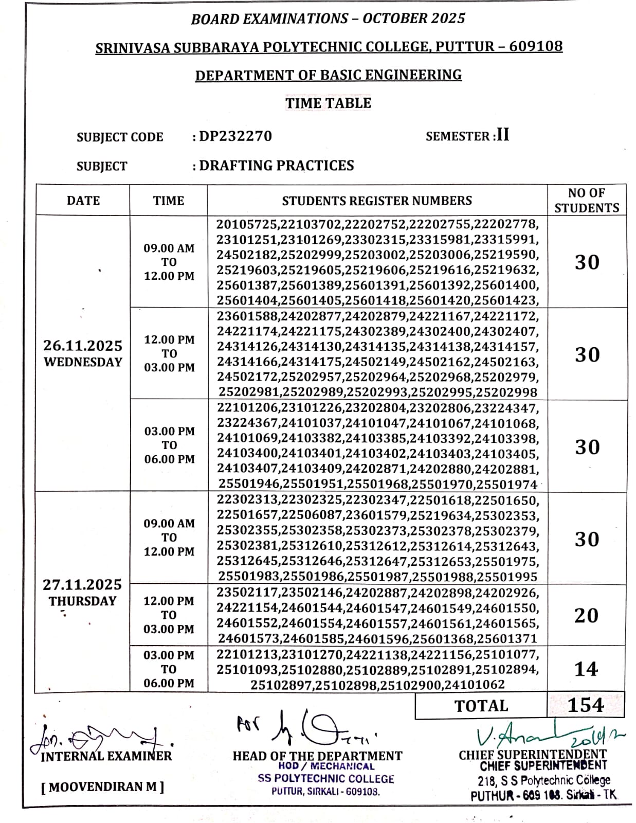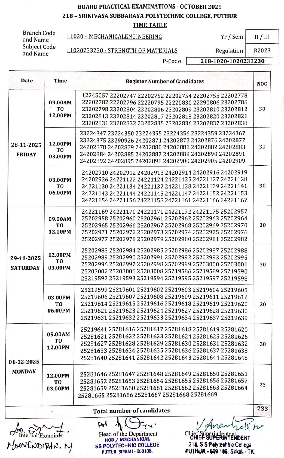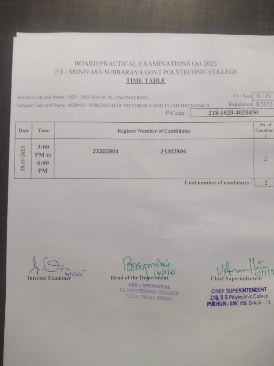 PRACTICAL EXAM TIME TABLE OCT 2025
