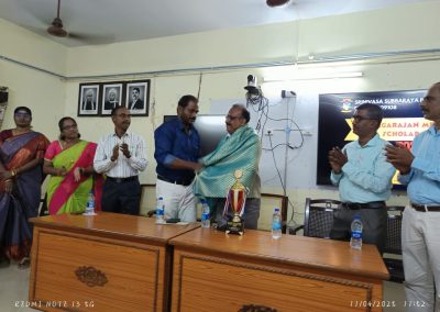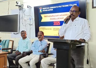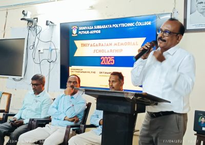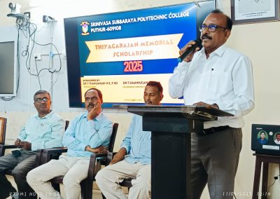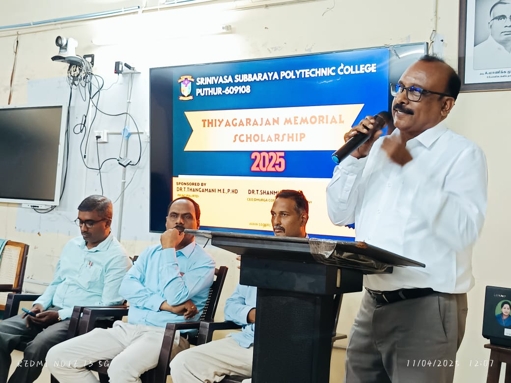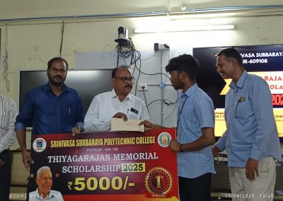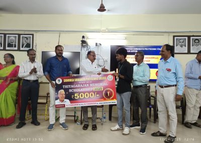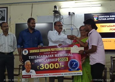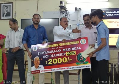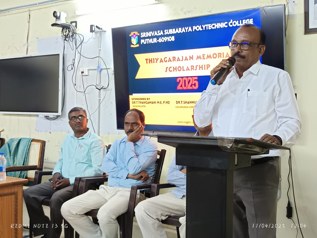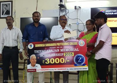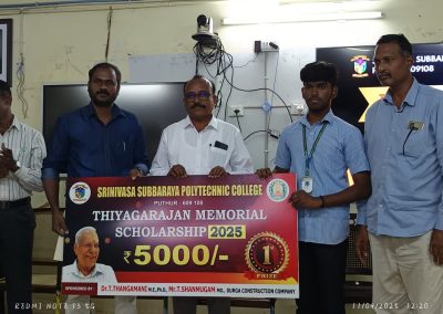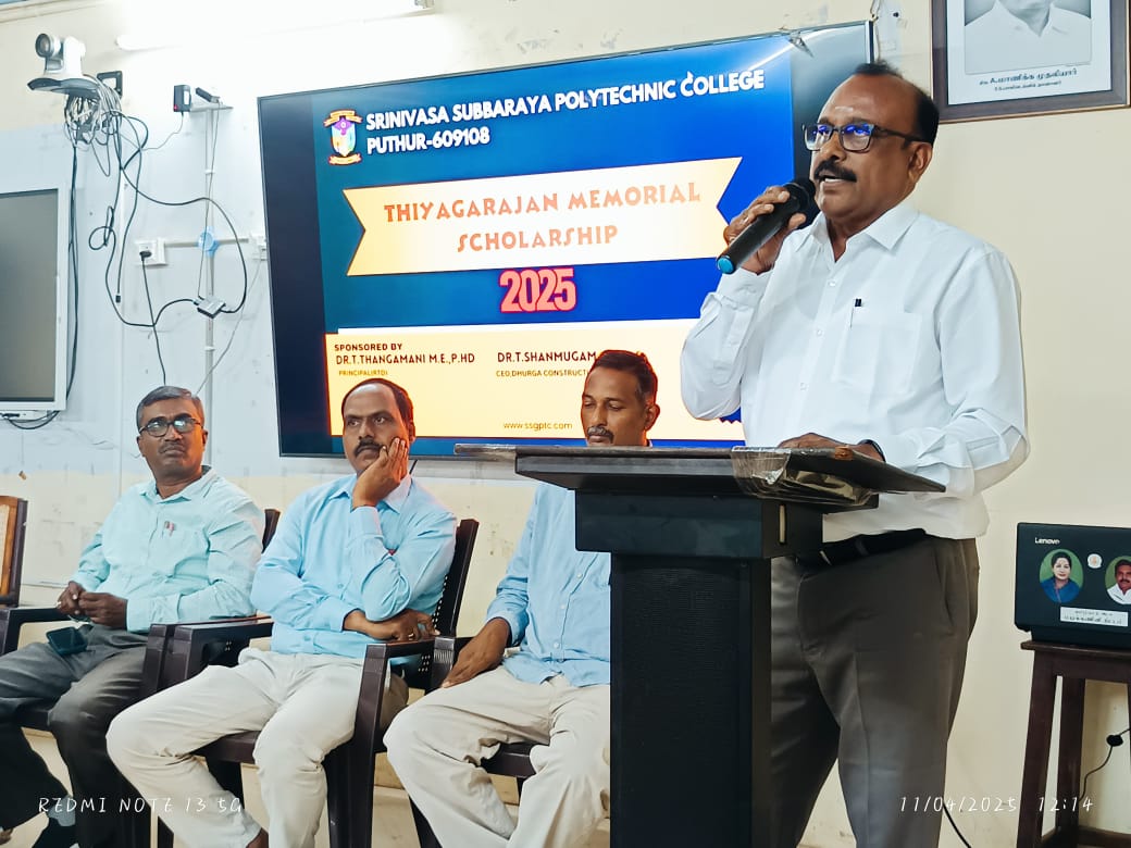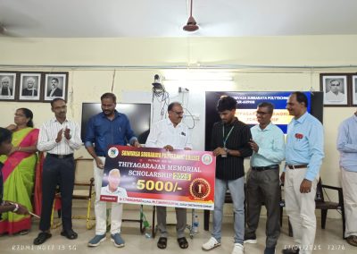 இக்கல்லூரியின் முன்னாள் முதல்வரும், முன்னாள் மாணவருமான முனைவர் T. தங்கமணி அவர்களின் குடும்பத்தின் சார்பாக ஆண்டுதோறும் முதல் மூன்று இடங்கள் பிடிக்கும் அனைத்து துறை மாணவர்களுக்கும் ரூபாய் 50,000 ஊக்கத்தொகை வழங்கி வரும் நிகழ்ச்சி ஏப்ரல் 11 – 2025 அன்று சிறப்பாக நடைபெற்றது.